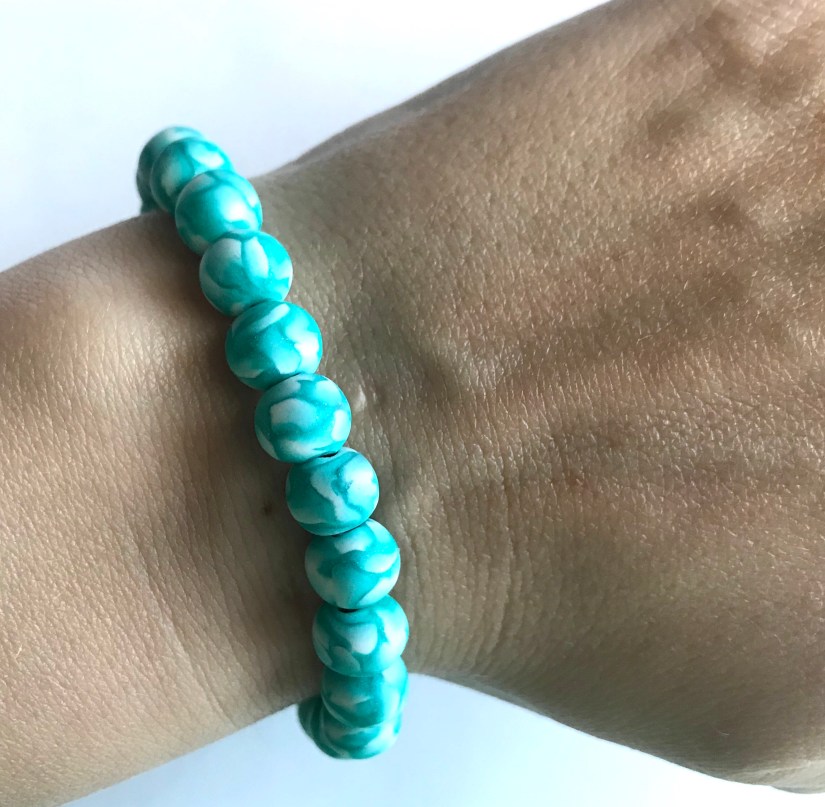 Just Added! April 22, 2019April 22, 2019 beadsbykatrina This beautiful, “Shaded Teal Pearl”, stretch style bracelet features teal pearl and white ombre print polymer clay beads that were entirely handmade by me and have been strung on doubled, white jewelers’ elastic. Share this:TweetMoreShare on TumblrLike Loading... Related Published by beadsbykatrina View all posts by beadsbykatrina