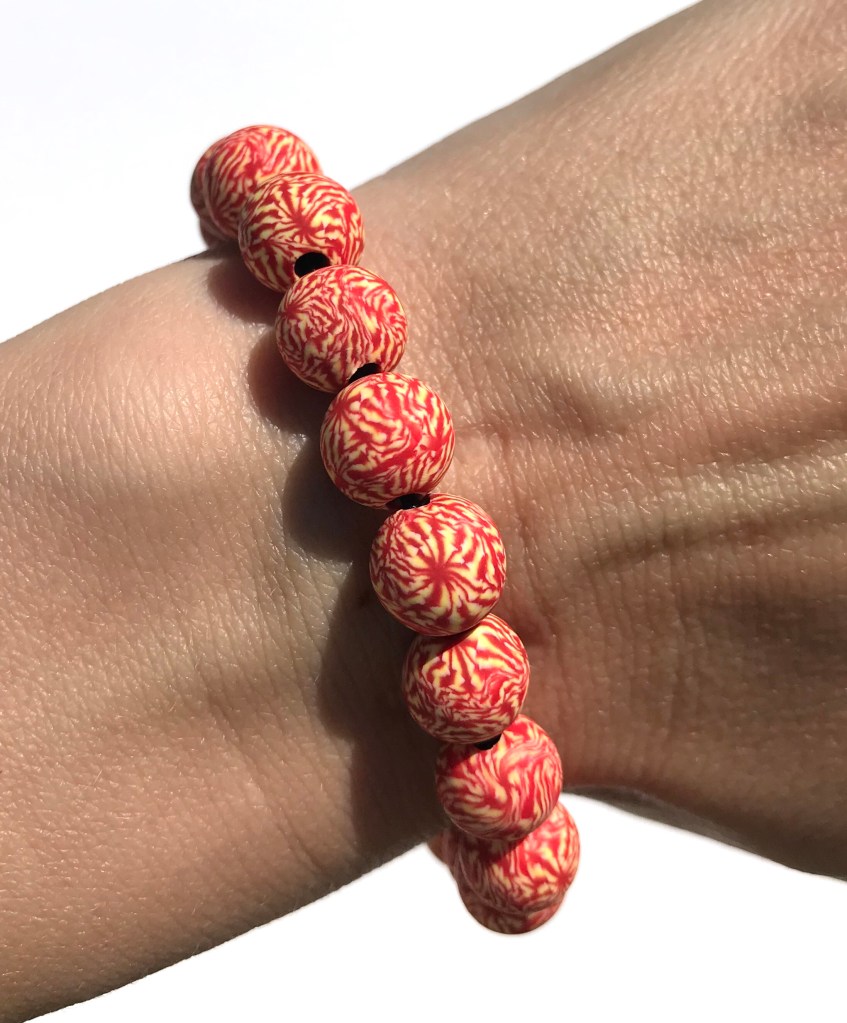 This is a fun red and yellow burst design to add a pop of color to your outfit! Now available at http://www.etsy.com/shop/beadsbykatrina!