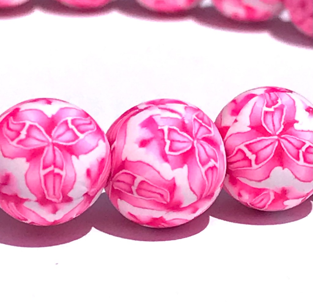 This beautiful “Rose Petal” bracelet features hot pink and white polymer clay printed beads that were entirely handmade by me.
